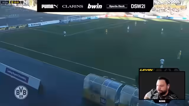 01:01:58Zur zweiten Halbzeit führt der BVB mit 2:0 gegen den BV Werther. Die Gastgeber setzen ihren Druck fort und kommen zu weiteren Torchancen. Es fallen weitere große Chancen, aber die Torhüterin der Gäste bleibt in großartiger Form und pariert mehrfach. Ein weiteres Tor gelingt den BVB-Spielerinnen vorerst nicht. Parallel dazu finden im Chat verschiedene Aktionen, wie Kanalwetten und eine Diskussion über ein historisches Champions-League-Finale, statt, während das Spielfeld weiterhin im Fokus steht.