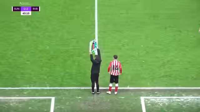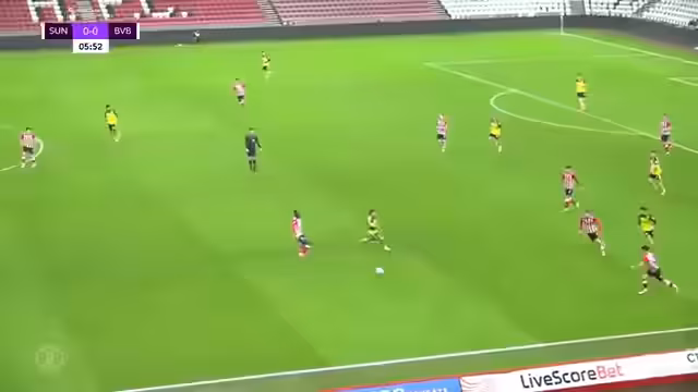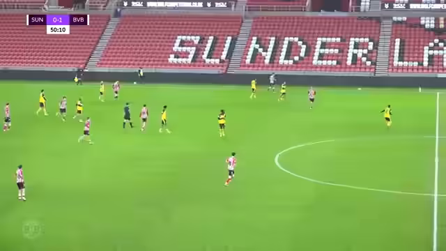 00:02:28In der Anfangsphase dominiert Sunderland das Spiel und kommt zu mehreren guten Torgelegenheiten, insbesondere durch Standardsituationen und gefährliche Eckbälle. Die Gastgeber pressen den BVB in dessen Hälfte. Der BVB wirkt in dieser Phase zurückhaltend und hat kaum Vorstöße in die gegnerische Hälfte zu verzeichnen. Die Führung für den BVB fällt in der 23. Minute durch einen Elfmeter. Taizhan Ichibasi wird im Strafraum regelwidrig gestoppt und kühl verwandelt. Der BVB geht somit mit 1:0 in Führung ins Viertelfinale.