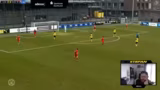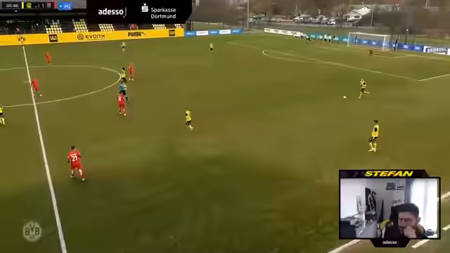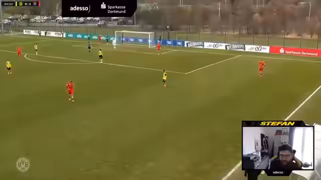 00:06:46Das Spiel startet sehr ungestüm und wild in beide Richtungen. Der BVB agiert aggressiv im Gegenpressing, was zu schnellen Ballgewinnen führt. Dies resultiert in mehreren Großchancen für den BVB, darunter ein Kopfball von Matthias Albert, der frei vorm Tor neben das Tor köpft, sowie mehrere Schüsse an den Aluminiumtorpfosten und eine Abwehraktion des Torhüters von Unterhaching. Trotz der Überlegenheit bleibt es torlos. Ein individuer Fehler von Musa Kaba führt zum gegnerischen Führungstreffer, wodurch das Spiel in den letzten Minuten der ersten Halbzeit deutlich kippt und Unterhaching die Oberhand gewinnt.