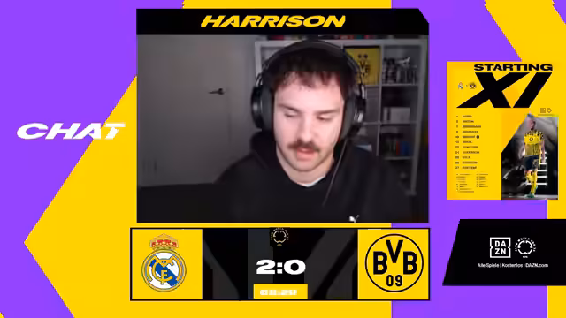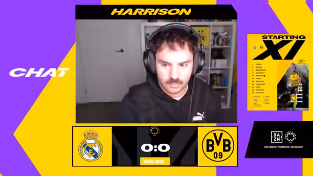 00:00:08Der Streamer eröffnet den Live-Stream mit dem Hinweis auf ein großes Spiel, das als 'Battle of the Bellions' angekündigt war, wobei er jedoch einschränkt, dass dies noch nicht der Fall sei, aber im Laufe der Saison noch passieren könnte. Er fordert die Zuschauer auf, ihre Torvorhersagen zu teilen. Zu Beginn des Spiels versucht Dortmund, den Ball zu halten, was in den bisherigen Spielen gefehlt hat. Die linke Seite mit Romadrucci scheint vielversprechend, und es wird ein temporeiches Spiel erwartet, in dem Dortmund versucht, das Spiel zu neutralisieren. Es wird erwähnt, dass Mbappe zunächst auf der Bank sitzt, was die Stärke des Kaders unterstreicht, auch wenn er nicht vollkommen fit ist. Der Streamer freut sich über das volle MetLife Stadium, das er als Heimat der New York Mets bezeichnet. Dortmund versucht, Schüsse auf das Tor von Koval zu minimieren, der bisher ein starkes Turnier gespielt hat. Garcia scheint aktiv zu sein und oft über die linke Seite anzugreifen.