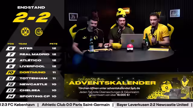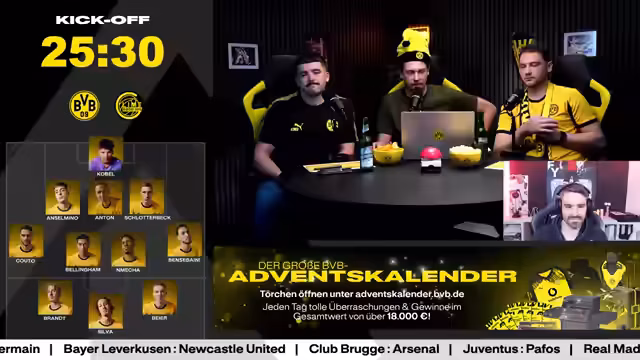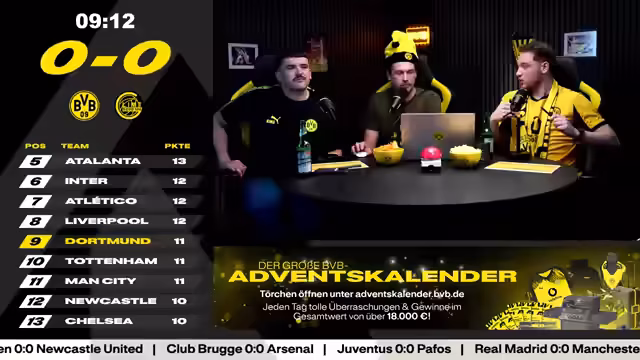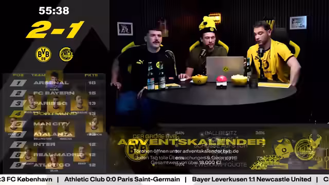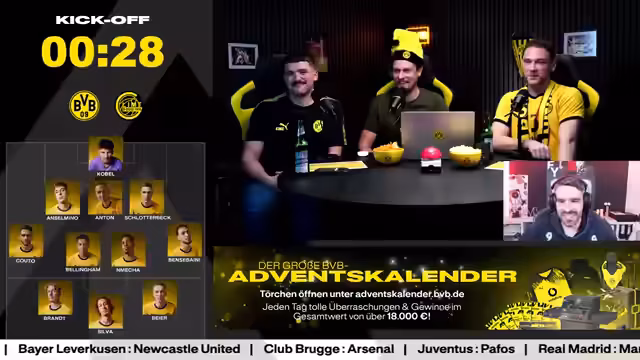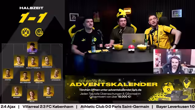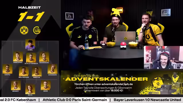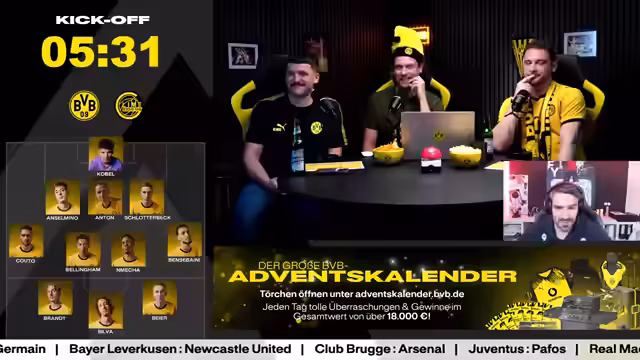 00:02:57Der Stream beginnt mit der sechsten Champions-League-Heimspiel-Watch-Party gegen Bodø/Glimt. Die Moderatoren begrüßen die Zuschauer auf Twitch und YouTube und kündigen ein wichtiges Interview mit Marco Reus an. Reus, der zuvor bei Danny Fritz war, sprach auch mit Nico Schlotterbeck. Es gibt zusätzlich die Information, wie man für das letzte Heimspiel der Champions-League-Saison gegen Inter Mailand gewinnen kann.