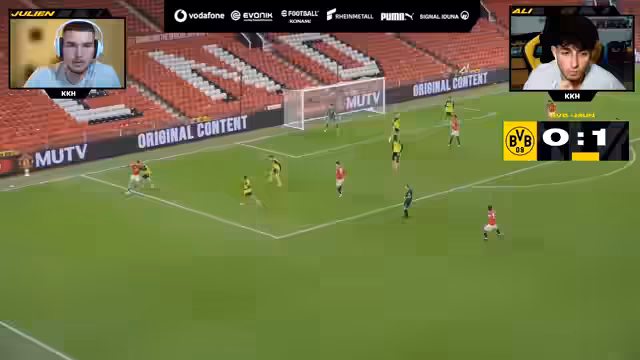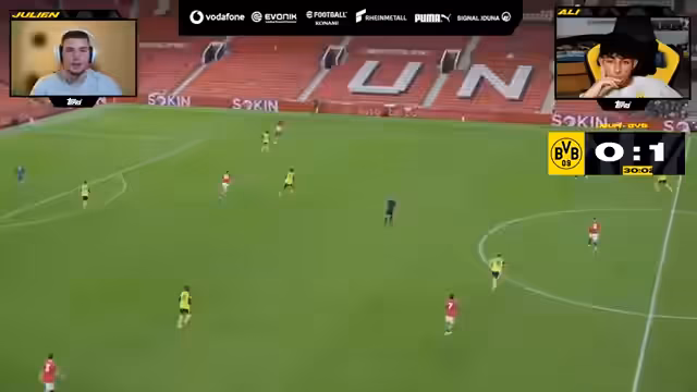 00:00:03Die Watchparty zum Spiel Manchester United U21 gegen Borussia Dortmund U21 beginnt mit der Begrüßung der Gäste Timo aus dem Social Media Team des BVB und Julien, einem Torwart der U19. Sie geben erste Einblicke und Prognosen zum Spiel. Julien, der Torwart, äußert die Erwartung, dass Dortmund viel Ballbesitz haben wird und versucht, mit viel Ballspiel und sogenannten 'Strikes' (ein Tor erzielen, ohne dass der Gegner den Ball berührt) zum Erfolg zu kommen. Timo ergänzt, dass das vorherige Spiel gegen Leeds eine starke Leistung war und erwartet viele Tore in der aktuellen Partie gegen Manchester United, da diese viel Offensiv-Power besitzen. Die Diskussion streift auch die Unterschiede im englischen und deutschen Jugendfußball, wobei der englische Fußball als körperlich härter, der deutsche aber spielerisch überlegen beschrieben wird.