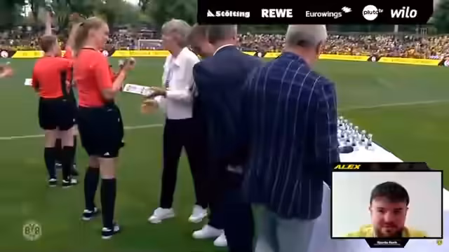 00:19:58Es geht um viel, und das Team ist etwas entspannter als im Ligaspiel, aber dennoch ambitioniert. Schalke setzt auf Körperlichkeit und intensive Zweikämpfe. Borussia Dortmund hat gute Umschaltmomente und lässt Schalke kaum zur Entfaltung kommen. Das Spiel ist wahrscheinlich das letzte Pflichtspiel der Saison für Borussia Dortmund, da die Profis noch im Club World Cup spielen. Schalke war die einzige Mannschaft, die Dortmund in der Liga besiegen konnte. In der Regel sind die Dortmunder Frauen die klaren Favoriten, aber heute merkt man davon nichts. Julia Matuschek, die beste Spielerin von Schalke, verhindert Torchancen. In der 14. Minute gab es eine strittige Szene, die zu Diskussionen führte. Es gibt viele Fouls, was den Spielfluss beeinträchtigt. In der 21. Minute wird der Partner DSW21 für die Unterstützung gedankt. Schalke setzt auf Körperlichkeit, Zweikämpfe und Intensität.
