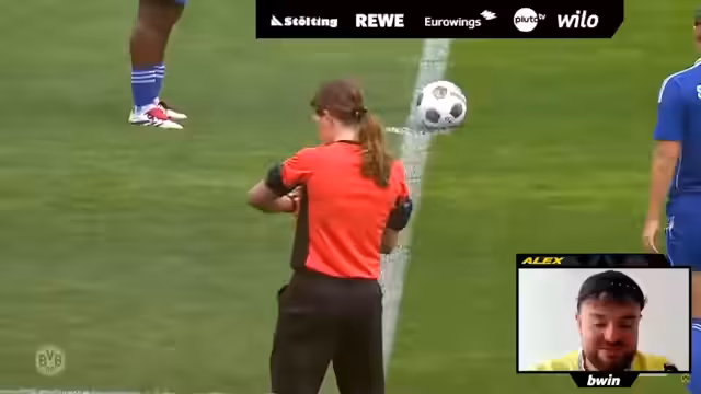 00:35:08In der 31. Minute fällt das 1:0 für Borussia Dortmund durch Annika Enderle. Zuvor gab es eine strittige Situation mit einem möglichen Foul an der Torhüterin. Die Schiedsrichterin ließ das Tor jedoch gelten. Kurz darauf erhält eine Schalker Spielerin eine gelbe Karte für ein Foulspiel. Annalena Rieke wird für dieses Foul ebenfalls verwarnt. In den letzten Minuten der ersten Halbzeit erhöht Dortmund den Druck und kommt zu weiteren Chancen. Schalke wirkt angeschlagen. Kurz vor der Halbzeitpause muss eine Schalker Spielerin behandelt werden. Die erste Halbzeit endet mit einer verdienten 1:0 Führung für Borussia Dortmund. Die Leistung der BVB-Frauen wird gelobt, und es wird betont, dass sie sogar noch höher hätten führen können. In der Halbzeitpause wird Elie aus der U17 und dem BVB-Football-Team interviewt, die Dortmund klar besser sieht und die Führung als verdient ansieht.