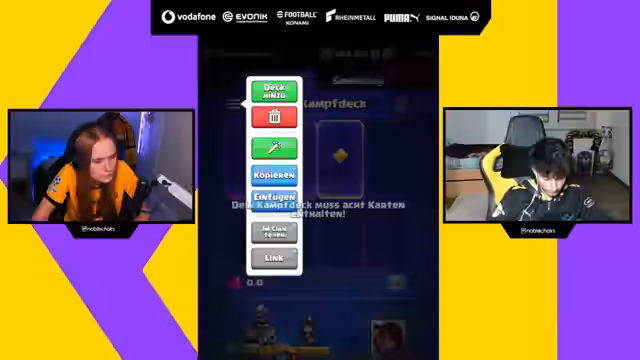 00:57:17Nach dem intensiven GeoGuessr-Duell wechseln die beiden zum Spiel Clash Royale. Fiona gibt an, das Spiel zwar zu kennen, aber die genauen Funktionsweisen der Karten nicht. Sie rufen sich gegenseitig die Karten auf, die sie im Deck haben, wie Riese, Lakaien und Feuerball. Ali erläutert Fiona die grundlegende Strategie: Man sollte Elixier sparen, zuerst verteidigen und erst dann angreifen. Es wird betont, wie wichtig es ist, eine Karte gezielt zur Konterung einer gegnerischen Karte einzusetzen, anstatt sie einfach ins Spiel zu werfen.