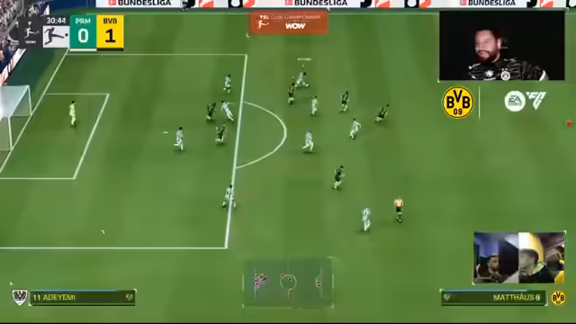 00:27:48Zur Halbzeit führt der BVB mit 1:0 gegen Preußen Münster. Beide Mannschaften spielen offensiv und wollen Tore erzielen. Rohe und Ali analysieren das Spiel in der Pause. In der ersten Halbzeit gab es nur drei Torschüsse, was die starke Defensivleistung beider Teams zeigt. Die zweite Halbzeit beginnt. Ein Sieg im Doppel ist wichtig für den weiteren Verlauf des Abends. Preußen Münster zeigt eine starke Partie. Der BVB verteidigt gut, aber es gibt immer wieder gefährliche Situationen. Im zweiten Spiel wird Rohe gegen Libo antreten. Der Streamer betont, wie wichtig der Sieg ist, um den Spieltag vorzeitig zu entscheiden. Aktuell gibt es die Möglichkeit, auf den ersten Tabellenplatz zu springen. In der zweiten Halbzeit gibt es den ersten Wechsel auf beiden Seiten. Das Spiel wird durch viele Unterbrechungen geprägt. Die Aktionen im letzten Drittel gelingen noch nicht optimal, aber die Defensive ist weiterhin stark.