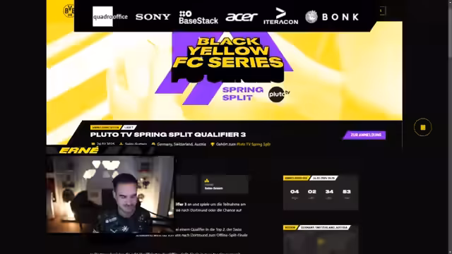 01:30:03Für Montag wird die Black Yellow FC Turnierreihe im Ultimate Team Modus angekündigt. Kommentatoren werben für die kostenlose Anmeldung und erwähnen attraktive Gewinne. Diese reichen von einem Date mit dem Streamer bis hin zur Möglichkeit, einen E-Football-Vertrag zu erhalten oder bei einem Heimspiel vor Ort zu spielen.