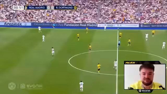 00:12:31Die erste Halbzeit des Legendenmatches beginnt mit einer Analyse der Positionen der Spieler. Marcelo und Julio Baptista erzielen das 1:0 für Real Madrid. Der Streamer lobt die Flanke von Marcelo und das Timing von Baptista. Moritz Leitner kurbelt das Spiel an, und Amoroso ist auf der rechten Seite aktiv. Jörg Heinrich spielt einen schönen Ball auf Bender. Manni Bender leistete viel für den BVB. Raul führt das Legenden-Team von Real Madrid als Kapitän an. Raphael Varane beendete seine Karriere mit 32 Jahren. Roberto Carlos wird ausgewechselt. Lukas Barrios kommt ins Spiel und war eine Verstärkung für den BVB. Kalle Riedler geht runter und Barrios kommt rein. Moritz Leitner ist noch relativ jung. Amoroso versucht es mit einem Tiefenball. Lucas Barrios versucht, den Ball an Ika Kassias vorbeizubringen. Ömer Torprag verhindert das 0:2. Lukas Barrios versucht den Schlemper, aber Piszczek macht die Meter mit. Piszczek's Hereingabe ist präzise und Manni Bender erzielt den Ausgleich zum 1:1. Toni Kroos lässt sich die Freistussposition nicht nehmen. Barrios erzielt das 2:1 für den BVB, wobei ein Abseits diskutiert wird. Der Torwart spielt einen schlechten Ball, und Barrios nutzt die Chance. Roman Weidenfeller hält stark. Marcelo zaubert mit der Brust. Es gibt eine Trinkpause. Julio Bacchista macht das 1-3. Adria Radon und Petritsch sind vorne drin. Toni da Silva mit dem Eckball. Leonardo Dede ist auch am Start.
