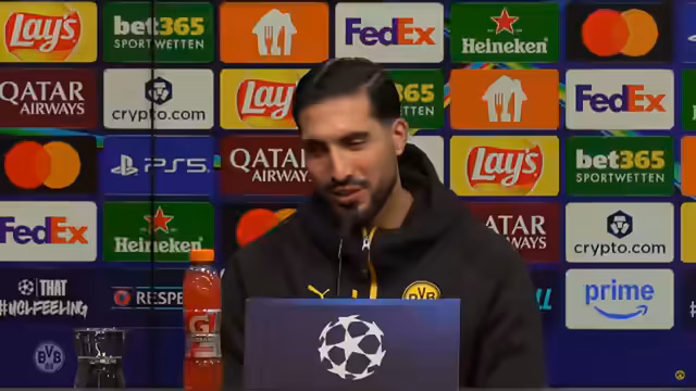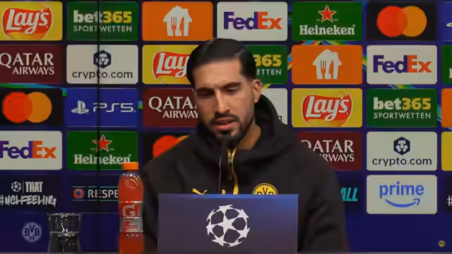00:12:08Auf die Frage von Janik Hüber bezüglich Lars Rickens Appell auf der Mitgliederversammlung, der sich einen Pokalsieg wünschte, antwortet Niko Kovac zunächst mit Glückwünschen an Atti zur Wahl des Präsidenten, den er als den richtigen Mann am richtigen Ort lobt. Er betont, dass der BVB immer um Titel spielen möchte, auch wenn die Meisterschaft schwieriger ist als der Pokal. Emre Can ergänzt, dass es selbstverständlich sei, als BVB-Spieler Titel gewinnen zu wollen und der DFB-Pokal der vermeintlich einfachste Weg sei. Beide betonen, dass sie sich auf das Champions League Spiel freuen und keinen Druck verspüren.
