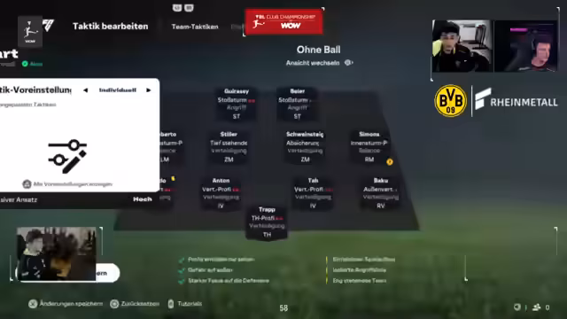 00:01:35Der Stream startet mit anfänglichen technischen Problemen, die jedoch schnell behoben werden können. Es wird ein Spielstand von 2-1 in der 28. Minute erwähnt, wobei der Fokus auf den aktuellen Spielzug und die defensive Aufstellung des Gegners gelegt wird. Es wird festgestellt, dass die Mannschaft konteranfällig ist, der Gegner aber auch gut agiert. Die Analyse konzentriert sich auf die Notwendigkeit, Ballverluste in der Offensive zu vermeiden, um Konter zu verhindern. Trotz einiger Aufbaufehler und einer insgesamt ekligen Spielsituation gelingt es kurz vor der Halbzeit, den Ausgleich zum 2-2 zu erzielen, was als positives Signal für die zweite Hälfte gewertet wird. Es wird die Wichtigkeit betont, im Mindset positiv in die zweite Halbzeit zu gehen.