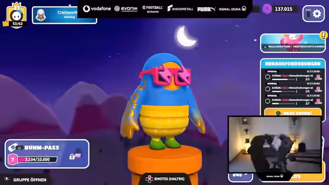 00:05:54Der Stream beginnt mit technischen Checks und der Begrüßung der Zuschauer. Es wird angekündigt, dass es heute zwei Streams geben wird: einer mit dem BVB und später ein 'Team of the Year' Stream. Der Hauptfokus liegt auf einer Oldschool-Challenge für das Spiel Fall Guys, die gemeinsam mit der Community absolviert wird. Teilnehmende haben die Möglichkeit, ein BVB-Trikot zu gewinnen, indem sie eine Runde als erster abschließen oder eine ganze Stufe des Spiels gewinnen. Der dazu notwendige Link zur BVB-Gaming-Seite wird im Chat gepostet.