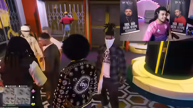 02:44:40Der Stream beginnt mit der Aufarbeitung eines gescheiterten Banküberfalls. Es kommt zu erheblichem Streit innerhalb der Gruppe, da eine unerwartete andere Gang sich in den Plan einkratzte und die Situation eskalierte. Die Protagonisten sind verärgert über die mangelnde Professionalität und die unkontrollierbare Menge an Personen, die den Plan durchkreuzten. Insbesondere der Einsatz eines Lockvogels missglückte, da auf einmal zu viele Personen stürmten und die Polizei vermutlich alarmiert wurde, was als extrem unglücklich angesehen wird.