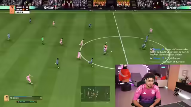 00:00:00Der Stream startet aus dem Studio mit dem Ziel, einen langen FIFA-Stream zu veranstalten, nachdem der Streamer zwei Jahre Pause von FIFA gemacht hat. Erwähnt wird, dass Emre später im Stream übernehmen wird. Anfangs gibt es Schwierigkeiten mit der Steuerung und dem Menü, da die letzte FIFA-Session lange zurückliegt. Der Streamer bittet den Chat um Hilfe und erwartet keine hohen Leistungen zu Beginn. Zunächst wird ein Spiel in Division Rivals gestartet, wobei der türkische Kommentator für einige Verwirrung sorgt. Es wird über die Schwierigkeiten beim Toreschießen und die ungewohnte Steuerung gesprochen. Trotz vieler Schüsse gelingt es zunächst nicht, ein Tor zu erzielen, was zu Frustration führt. Das erste Spiel endet unentschieden, was als akzeptabel angesehen wird.