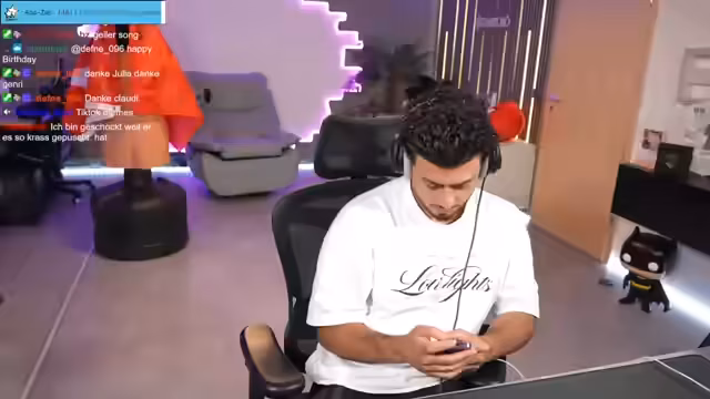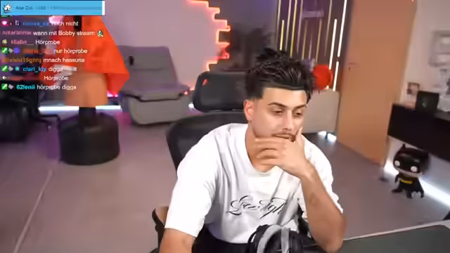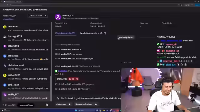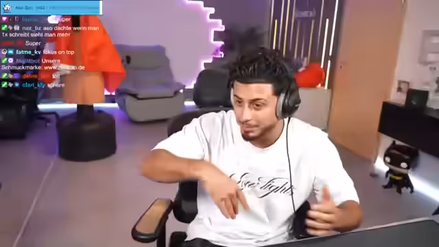 02:14:49Zurück zu Hause stellt sich eine neue Herausforderung heraus: Nidal kann nicht auf einem normalen Stuhl sitzen bleiben. Dies führt zu einem witzigen und umständigen Versuch, den Jungen in einen passenden Sitz zu befördern. Parallel dazu plant der Streamer seinen Content für die folgende Woche und beginnt, Entbannungsanträge für den Chat zu bearbeiten, bei denen sich besonders eine Mod namens Leni durch besonders viele Sperren hervortut.