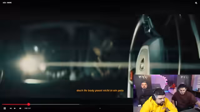 02:52:03Der Stream reagiert auf Amo's Song 'Zieh, Zieh' und lobt die Jungs für ihre konstanten Releases und ihre richtige Herangehensweise. Es wird über das Musikvideo diskutiert, das Szenen im Weltall oder auf dem Mond zeigt, wobei die Echtheit der Kulisse angezweifelt wird. Trotz der Diskussion über Greenscreen und reale Aufnahmen wird der Song als geil und der Release als Happy Release bewertet. Anschließend wird der Song 'Kanak geht drauf' von Cardo X Eno vorgestellt, der als sehr passend für BZ Bros empfunden wird. Die Hook und die Zusammenarbeit mit Eno werden besonders hervorgehoben und als sehr stark bewertet.