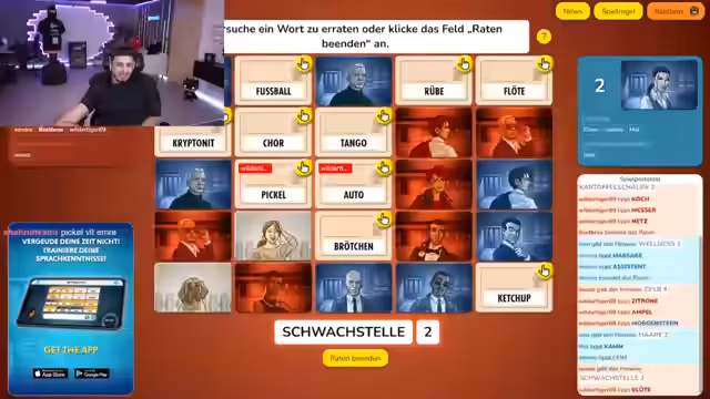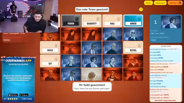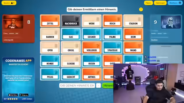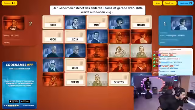 02:40:01Ein Spieler erklärt die komplexen Regeln von Codenames: Es geht darum, in Teams Wörter zu raten, die von einem 'Geheimdienst-Chef' vorgegeben werden. Die Geheimdienstchefs sehen die Farbkarten der Wörter, während ihre Teams nur die Wörter raten müssen. Der Fokus liegt auf der Kommunikation innerhalb der Teams. Es kommt zu Streit darüber, wer die Erklärung übernimmt und wer auf die Wörter drücken soll. Der Streamer betont, dass das Spiel zu kompliziert erklärt wird und die Zusammenarbeit nicht optimal funktioniert. Es wird versucht, die richtigen Wörter durch Abstimmung zu finden, was oft zu Verwirrung führt.