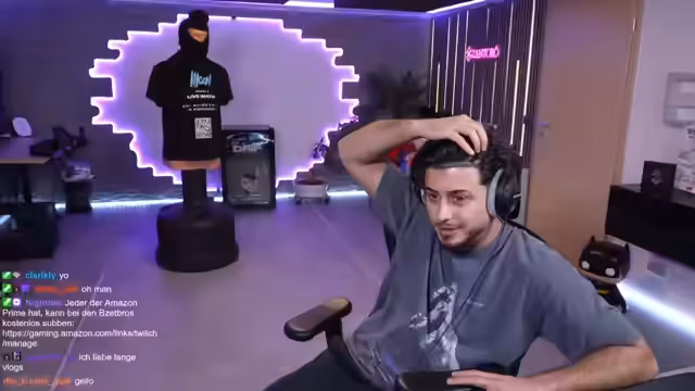 00:05:59Mit den Worten 'Assalamu alaikum. geht's euch?' begrüßt der Streamer den Chat und kündigt an, dass dies sein letzter Stream aus Deutschland ist. Er erwähnt die Anwesenheit von Hassuna und dessen Bruder Badawe, und stellt heraus, dass die 'Bruder-Thematik' bei Hassuna eine sehr wichtige Angelegenheit ist. Gleichzeitig wird Heike im Stream erwähnt, die ebenfalls zugegen ist, was auf eine besondere Atmosphäre hindeutet.