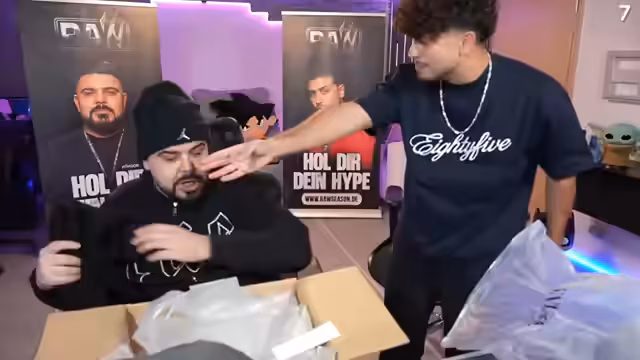 00:09:01Der Streamer und sein Empfänger öffnen mehrere große Pakete, die sie von Partnern wie Sidejeans, Nimesky, Sammy und Jordan erhalten haben. Es handelt sich um Kleidungsstücke, die gemeinsam ausgepackt und besprochen werden. Der Streamer zeigt sich begeistert von der Qualität und den Designs und plant, die Sachen selbst zu tragen. Er betont, dass es sich um unbezahlte Werbung handelt, da er die Partner mag und aus reiner Neugier handelt.