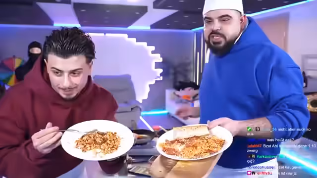 00:25:57Das Kochduell verlief chaotisch und von ständigen verbalen Auseinandersetzungen begleitet. Beide kochten gleichzeitig auf je einer Herdplatte, wobei der Streamer Emre mehrmals wegen falscher Vorgehensweise kritisierte. Nach dem Kochen wurden die Gerichte im Stream präsentiert. Die Entscheidung fiel per Abstimmung im Chat aus, der sich einstimmig für den Streamer als Sieger aussprach, da sein Gericht optisch appetitlicher und besser zubereitet wirkte.