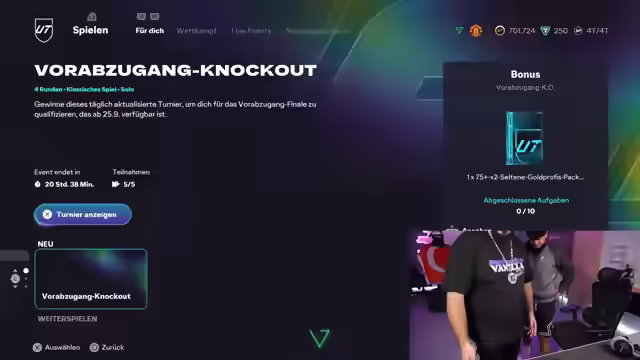 00:17:56Der Streamer äußert seine Frustration über das Draft-Team und die Schwierigkeit, Spiele zu gewinnen. Er erwähnt, dass er seit vier Wochen krank ist und sich nicht wohl fühlt. Es wird überlegt, eine Kameraeinstellung zu ändern. Der Streamer beschwert sich darüber, dass er in Draft immer wieder rausfliegt und dass die Gegner zu stark sind. Er erwähnt, dass Abdo gestern Draft gewonnen hat. Es wird diskutiert, ob man Hero-Spieler verlinken kann. Der Streamer zieht Packs in FIFA und ist enttäuscht von den Ergebnissen. Er spielt Squad Battles, um den Transfermarkt freizuschalten, und findet die Aufgaben langweilig. Es wird überlegt, ein neues Draft zu starten. Der Streamer ist frustriert über sein schlechtes Team und hat keine Lust mehr auf FIFA. Er muss noch Squad Battles spielen, um den Transfermarkt freizuschalten. Es wird erwähnt, dass Berti Naxel die Projektleitung von Raw übernimmt und die Produktion leiten wird.