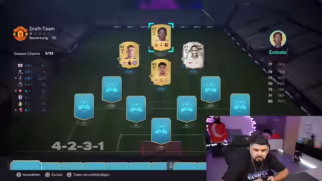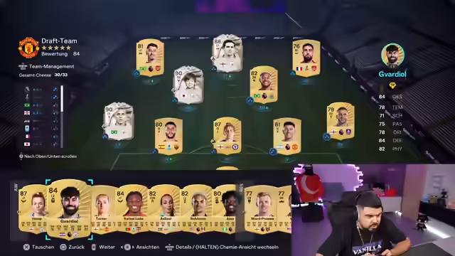 00:00:15Es wird ein Hotel in der Gegend gesucht, um ein Zimmer mit Regenduschen zu buchen. Der Streamer kündigt an, dass bald wieder Raw Season beginnt und YouTube wiederbelebt wird. Direkt danach wird mit FIFA gestartet. Es wird überlegt, ob man gemeinsam etwas in FIFA machen soll. Der Transfermarkt muss freigeschaltet werden, wofür Aufgaben erledigt werden müssen. Es wird ein Draft in FIFA gemacht, wobei die Zuschauer bei der Auswahl der Spieler helfen sollen. Es werden verschiedene Spieler diskutiert und ins Team aufgenommen, allerdings scheint das Team nicht besonders gut zu sein. Der Streamer äußert sich frustriert über das Draft-Team und die langsamen Spieler. Es wird überlegt, wie man die Chemie im Team verbessern kann. Es wird erwähnt, dass man Squad Battles spielen muss, um den Transfermarkt freizuschalten.