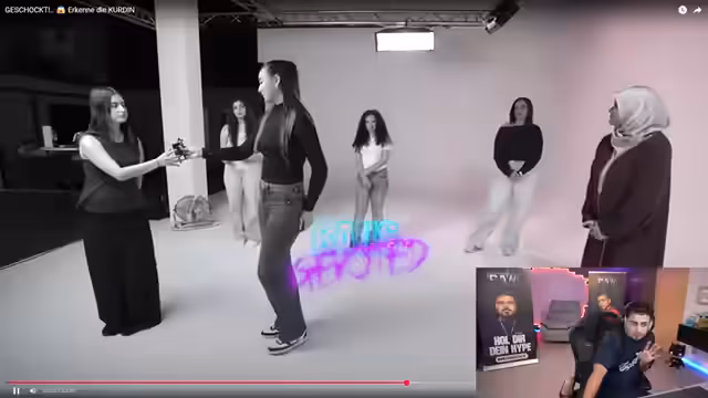 01:34:08Der Streamer reagiert auf das Video 'Erkenne die Kurdin' von NineSky und analysiert die Bewerberinnen. Er bewertet äußere Merkmale wie Gesichtszüge, Behaarung und Stimmtiefe als Indikatoren für kurdische Herkunft. Besonders die Bewerberin Silan (vorne links) wird als authentisch eingestuft, während Zweifel an anderen Bewerberinnen bestehen. Die Diskussion konzentriert sich auf kulturelle Marker und deren Interpretation.