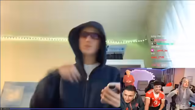 00:05:12Nach einer musikalischen Eröffnung begrüßen Donika und Hoodboy Kelly das Publikum und begrüßen sich gegenseitig. Beide Hosts sind gespannt in den Start gegangen und teilen die Freude über das Wiedersehen. Donika beginnt damit, aus dem Chat diverse Namen der Zuschauer vorzulesen, während Hoodboy Kelly ebenfalls gezielt Grüße an das Publikum auf seiner Seite richtet, um die interaktive Verbindung aufzubauen.