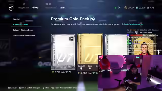 03:17:30Der Streamer scherzt über den Unterschied zwischen Männern und Frauen in Bezug auf Investitionen: Frauen investieren in Shein mit Klarna, während Männer ihr Geld in FIFA Packs investieren und sich dann wundern, warum sie nichts leisten können. Er gesteht seine FIFA-Sucht ein und beschreibt den Kreislauf, in dem er jedes Jahr aufs Neue in Packs investiert, keine guten Spieler zieht und am Ende alleine das Spiel nicht mehr spielt. Er erklärt, dass er sein Outfit gewechselt hat, um sich wohler zu fühlen, da er es nicht mag, lange Zeit dasselbe Outfit zu tragen. Der Streamer erwähnt, dass er und Lars prüfen müssen, ob sie noch etwas haben, und kündigt an, dass sie jetzt Packs ziehen werden. Er versichert den Zuschauern, dass Erda gleich wiederkommt, da sie nur kurz etwas zu Hause vergessen hat.