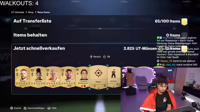 04:49:43Es wird eine neue Wette über einen Walkout bis 1:15 Uhr abgeschlossen. Die Frage aufgeworfen, ob die Preise aufgrund der fehlenden Verkaufsmöglichkeit stabil bleiben. Es wird vermutet, dass die Entwickler die Preise kontrollieren wollen. Es wird erwähnt, dass Accounts, die aktiv FIFA spielen, den Transfermarkt normal nutzen können. Es wird festgestellt, dass neue Accounts oder inaktive Accounts keinen Zugriff auf den Transfermarkt haben. Es wird über die Schwierigkeit diskutiert, Walkouts zu ziehen und sich angestrengt, ernsthaft zu ziehen, um einen Walkout zu bekommen. Es wird über die Qualität eines gezogenen Spielers (Nkunku) diskutiert. Es wird überlegt, ob BigChamp FIFA spielt und die Mods werden gebeten, ihn in den Discord einzuladen. Ein Anrufer beschwert sich über die Notwendigkeit, den Transfermarkt freizuspielen. Es wird über den Wert von Gündogan diskutiert und ein letztes Pack geöffnet, wobei nur türkische Spieler gezogen werden.