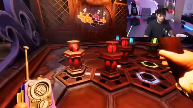 01:21:32Die Spieler gelangen zu einem neuen Bereich, in dem sie ein Farb-Puzzle lösen müssen, indem sie farbige Platten auf einem Gitter platzieren. Die Kommunikation über die benötigten Farben und die korrekten Platzierungen erweist sich als äußerst schwierig, da die Spieler unterschiedliche Ansichten der Umgebung haben und die Anweisungen oft missverstanden werden. Es entsteht Frustration, da Platten an falschen Stellen platziert werden oder die benötigten Farben nicht verfügbar sind. Das Ziel ist es, Farbverbindungen herzustellen, um Punkte zu sammeln und bestimmte Schwellenwerte für jede Farbe zu erreichen. Trotz der Schwierigkeiten versuchen die Spieler, sich gegenseitig durch das Labyrinth der Farben zu leiten und die Aufgabe gemeinsam zu bewältigen, wobei die Herausforderungen der Koordination und des Verständnisses im Vordergrund stehen.
