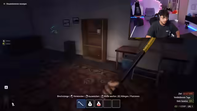 02:59:16Die Streamer versuchen, strategischer vorzugehen und sich auf Häuser zu konzentrieren, in denen die Bewohner abgelenkt sind. Einer der Streamer entdeckt eine Zeitschrift zur Verbesserung von Fähigkeiten. Sie schleichen sich in ein Haus ein, während der Bewohner im Garten arbeitet, und finden einen Türschlüssel. Sie planen, den schlafenden Bewohner auszurauben. Während des Einbruchs wird einer der Streamer von den Geräuschen des anderen Streamers verraten und entdeckt. Sie müssen erneut fliehen, wobei einer der Streamer von mehreren Polizisten getötet wird.