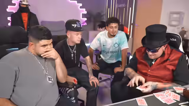 02:09:15Zunächst wird Kony als Autofreak entlarvt, der sogar einen Meistertitel als Motorenbauer besitzt. Anschließend demonstriert Kony einen verblüffenden Würfeltrick, bei dem er scheinbar vorhersagen kann, welche Zahl sein Gegenüber würfelt. Trotz des Verdachts auf Manipulation beteuert er die Echtheit des Würfels und schenkt ihn dem Streamer als Glücksbringer. Im Anschluss daran kündigt Kony eine gefährlichere Nummer an, nachdem er zuvor schon mit einem Angelhaken im Mund und einem Nagel unter dem Auge für Aufsehen gesorgt hat. Er betont, dass es sich um eine seiner letzten Nummern handelt, bevor er Fragen beantwortet. Es folgt eine Diskussion über den Gesundheitszustand und frühere Operationen, bevor Kony ein Skalpell und Klingen hervorholt. Er demonstriert die Schärfe der Klingen, indem er eine Karte zerschneidet und bietet an, eine Kontur zu schneiden. Der Streamer lehnt ab, da er ohnehin zum Friseur muss. Kony steckt sich anschließend mehrere Klingen in den Mund und trinkt Wasser, um sie herunterzuspülen. Der Streamer äußert Ekel und Sorge um Konys Gesundheit und Magen. Kony beruhigt ihn und erklärt, dass er die Klingen gleich wieder herausholen wird.