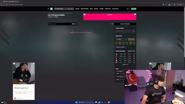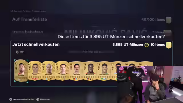 01:41:52Es wird über den Aufbau eines FIFA-Teams gesprochen und Frustration über den Verlust von Coins geäußert. Der Streamer scherzt über Apple Pay und bittet die Community um Unterstützung, fühlt sich aber unwohl dabei, dies immer wieder zu tun. Es wird überlegt, ob mit dem vorhandenen Budget ein starkes Team aufgebaut werden kann. Der Streamer fragt die Community nach ihrer Meinung und kündigt eine Umfrage an. Es wird überlegt, ob die Investition in FIFA einem Glücksspiel ähnelt und ob dies moralisch vertretbar ist. Der Streamer spricht über die Möglichkeit, die Ausgaben von den Steuern abzusetzen und betont, dass dies eine Investition in Content sei. Es wird über ein Treffen mit anderen Streamern gesprochen und überlegt, welche Kleidung angemessen wäre. Der Streamer äußert den Wunsch, einen bestimmten Spieler (O7-Mann) zu ziehen und vergleicht sich mit anderen Streamern. Es wird über Musik und verschiedene TikTok-Trends gesprochen. Der Streamer plant, FIFA-Spieler zu verkaufen und überlegt, wann der beste Zeitpunkt dafür ist.