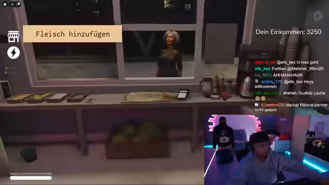 02:53:40Emre teilt mit, dass er morgen nach Marokko fliegen wird und plant, als Streamer durchzustarten. Er hat bereits Ausrüstung wie einen Gimbal-Stick besorgt und plant IRL-Livestreams. Gemeinsam mit dem Streamer lädt er Roblox herunter, um das Spiel 'Shawarma-Kiosk' zu spielen. Sie diskutieren über Benutzernamen und technische Vorbereitungen, während Emre seine Ambitionen als zukünftiger Star erklärt.