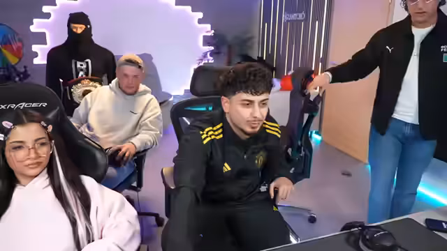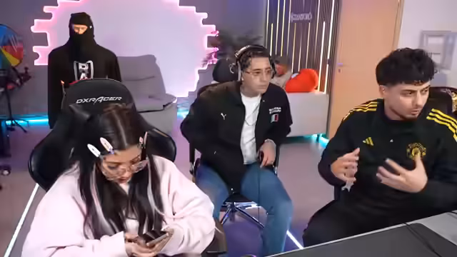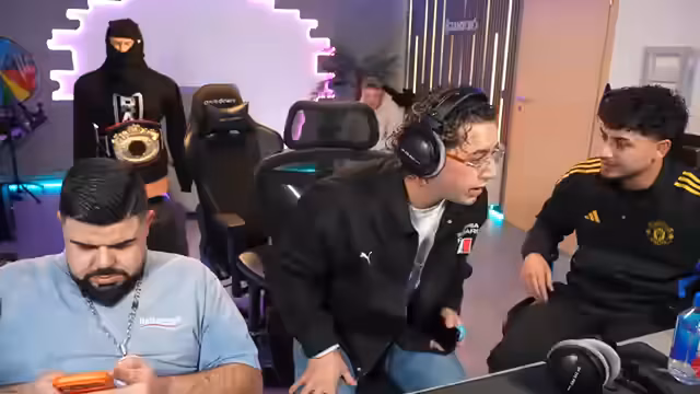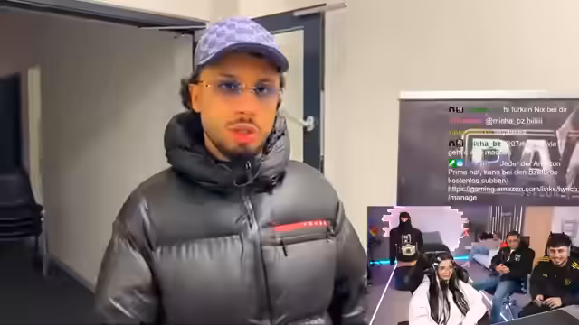00:13:53Stallone betritt den Stream und wird von den Moderatoren begrüßt. Gemeinsam mit Ritchills überreichen er und Asya dem Stream-Team Geschenke für die Einladung: Parfümprodukte, um den Streaming-Raum mit Duftnoten zu versorgen. Die Gäste bedanken sich mehrfach für die Einladung und betonen, wie korrekt die Geste ist. Der Chat wird aufgefordert, Ws (Zeichen der Unterstützung) in den Chat zu schreiben, während die Anreise der Gäste als entspannt beschrieben wird.