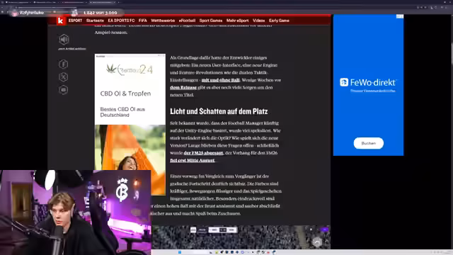 02:14:39Nach verschiedenen taktischen Überlegungen wird die endgültige Auswahl der Spieler getroffen. Als Torwart wird Olli Baumann von St. Pauli gewählt, mit der These, dass St. Pauli torlos gegen Hoffenheim bleibt. Diese All-In-Strategie soll maximale Punkte bringen. Für die Läufer-Position wird Daniel Sinani von St. Pauli nominiert, da er zu den laufintensivsten Spielern seines Teams zählt und ein hochdynamisches Spiel erwartet wird. Bei den Spieltipps für die anstehenden Bundesligaspiele zeigt der Streamer eine klare Tendenz zu hohen Torzahlen. Er tippt unter anderem auf einen Sieg für Köln gegen Augsburg (3:1) und einen hohen Sieg für Leipzig gegen Hamburg (4:1), was seine offensive Erwartungshaltung widerspiegelt. Die Tipps werden in der Kicktipp-Liga von Calcio Berlin vorgenommen und die aktuellen Platzierungen werden diskutiert.
