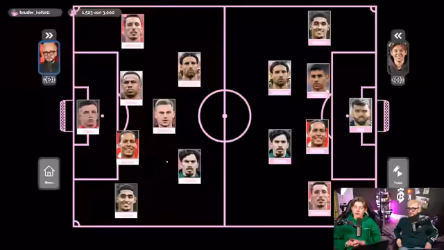02:20:58Nach den FIFA-Spielen wendet sich der Streamer dem Monats-Quiz zu, das er als abschließendes Highlight des Streams plant. Gleichzeitig kündigt er die Auswahl des 'Team of the League' für die Champions-League-Gruppenphase an. Beide Streams, Lukas und der Moderator, tauschen sich über die Kriterien für die Spielerwahl aus. Sie einigen sich auf eine 4-2-3-1-Formation und beginnen mit der Auswahl des Torwarts. Der Moderator nominiert zunächst David Raya von Arsenal, da dieser eine starke Defensive zeigte. Der Streamer hingegen argumentiert für Andriy Lunin von Benfica, weil dieser mit seinem Tor im letzten Gruppenspiel gegen Real Madrid einen ikonischen Moment schuf und den entscheidenden Impact für den Klassenerhalt hatte.