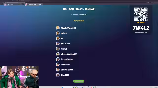 03:08:56Am Ende des Streams wurde ein neues monatliches Quiz-Format mit dem Titel 'Hau den Lukas' vorgestellt. Das Quiz, das auf der Plattform Geoguessr stattfindet, ist auf Geschwindigkeit ausgelegt und besteht aus elf themenbezogenen Fragen, darunter Multiple-Choice, Sortieraufgaben und Standortbestimmungen. Die Gewinner der Top 3 werden in eine Hall of Fame aufgenommen und erhalten einen Schal des Kanals.