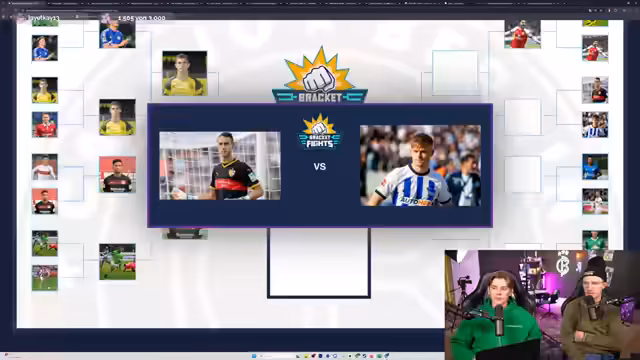 00:12:57Hauptthema des Streams ist das Debütanten-Battle, bei dem Profispieler mit ihrem Debüt in der Saison 2015/16 in einem K.-O.-System verglichen werden. Die Bewertung erfolgt anhand der gesamten Karriere. Nach ersten Duellen wie Fabian Rehse gegen Ismail Azawi und Waldemar Anton gegen Christian Pulisic zeichnet sich bereits eine Tendenz ab, wobei Stars wie Pulisic favorisiert werden.