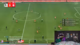 01:57:26Nachdem MSV Duisburg bereits mit 3:0 in Führung liegt, verschlechtert sich die Leistung des Streamers. Er macht mehrere defensive Fehler, die Frankreich zu torgefährlichen Kontern nutzen kann. Er diskutiert über die Taktik, insbesondere über die Verteidigung mit dem L2-Knopf, und gibt zu, dass er im Spiel unsicher wird. Trotzdem gelingt Frankreich ein Tor durch Mbappé auf 3:1. Das Spiel geht in die Verlängerung, in der der Druck auf den Streamer sinkt. Mit einem Last-Minute-Treffer aus einem Freistoß gelingt ihm der Ausgleich auf 3:3 und er zwingt das Spiel ins Elfmeterschießen, was er später als seinen größten FIFA-Moment bezeichnet.