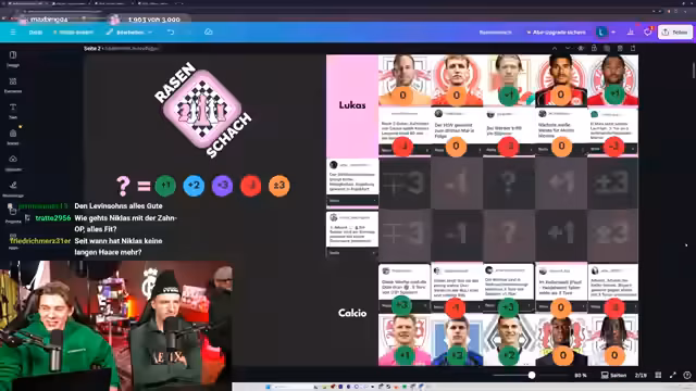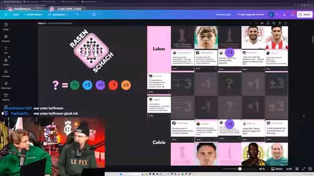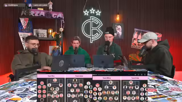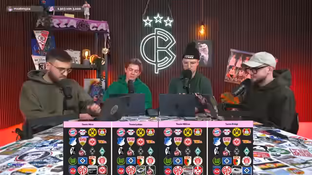 00:00:01Lukas Heinze und Cyborg Levinson starten den Stream mit einer Einführung in die heutigen Themen: Rasenschach, Bundesliga-Draft und die Jahres-Awards 2025. Sie rekapitulieren die vergangene Rasenschach-Runde und diskutieren aktuelle Thesen für Spieltag 15. Besonderes Augenmerk liegt auf kreativen Vorhersagen wie 'Köln gewinnt gegen Union' oder 'Bayern schießt vier Tore in Heidenheim', wobei die Moderatoren ihre Strategien für Punktgewinne erläutern. Zwischendurch gibt es persönliche Anekdoten zu Friseurbesuchen und Weihnachtsliedern wie 'Fairytale of New York'.