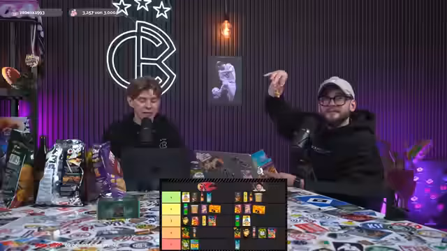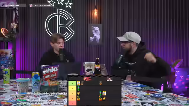 01:53:06Nach der fußballerischen Diskussion wechselt das Format zu einem Ranking der besten Fußball-Snacks basierend auf Zuschauereinsendungen. Die Moderatoren erklären, dass sie eine Mischung aus häufig genannten und ungewöhnlichen Snacks ausgewählt haben, die über eine Instagram-Story gesammelt wurden. Der Tisch ist mit verschiedenen Snacks und Getränken gefüllt, darunter auch einige überraschende Vorschläge. Das Ranking wird subjektiv nach persönlichem Geschmack und Eignung für das Fußballschauen bewertet, wobei Händlichkeit und Sofa-Tauglichkeit eine Rolle spielen. Einige Snacks sind für die Moderatoren neu, andere bekannt. Es wird betont, dass keine Snacks gesponsert sind und alle selbst gekauft wurden. Das Ranking soll unterhaltsam sein und die Einsendungen würdigen. Ein Hinweis auf gesunde Ernährung wird gegeben, aber der Fokus liegt auf dem Genuss. Der Übergang wird mit einer humorvollen Note eingeleitet, als die Kamera wieder auf die Tastatur und den Hund Helge fokussiert, der aufgrund von Magenproblemen draußen bleibt. Die Einführung legt den Grundstein für das blind Testen und Bewertung der Snacks.