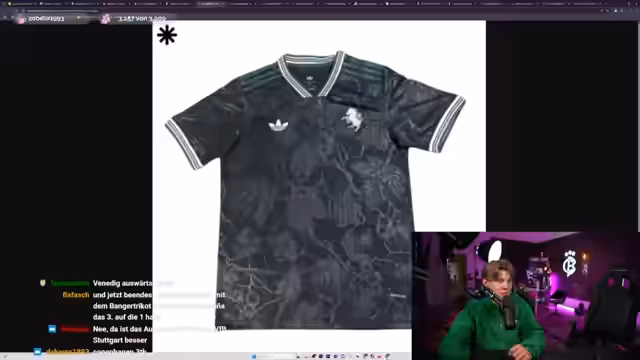 04:00:23Aus dem Gespräch über Fußball wird spontan ein Trikot-Ranking. Der Streamer bittet die Zuschauer in der Abstimmung, das Ranking-Format festzulegen, ob es sich ausschließlich auf Drittliga-Heimtrikots oder auf zufällige, kontrovers oder gut aussehende Trikots konzentrieren soll. Dies soll als lockere, freestyle-basierte Aktivität durchgeführt werden, die von den Vorschlägen des Chats abhängt.