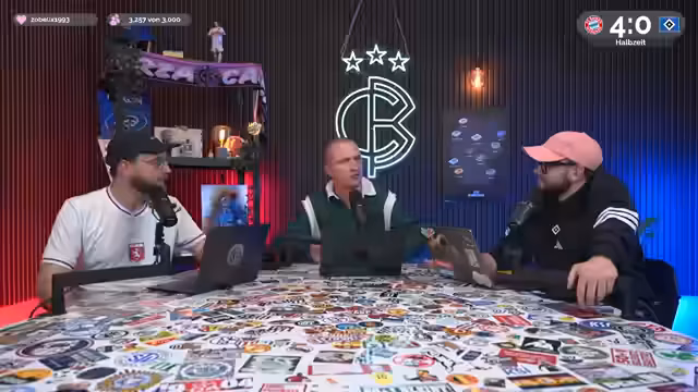 00:20:51Es wird über das Absetzen von Kosten bei der Steuererklärung gesprochen, wobei einer der Teilnehmer zugibt, bisher kaum etwas abgesetzt zu haben. Kurz darauf fällt das 2:0 für Bayern durch Pavlovich. Das Tor wird analysiert, wobei die gute Kombination und der Lauf von Pavlovich gelobt werden. Es wird ein Vergleich zum Lauf von Stanisic gegen Leipzig gezogen. Es wird über den Pulli von Chad gesprochen, der von der Firma gekauft und abgesetzt wird. Netflix wird als mögliche absetzbare Ausgabe genannt. Es wird betont, dass man einen Steuerberater hat, aber noch mehr absetzen könnte. Helge freut sich über die Anwesenheit aller Beteiligten, aber es geht ihm nicht gut beim Spielstand. Es wird über seinen Darmzustand und seinen Hunger gesprochen. Die Kombinationen der Bayern im Zentrum werden kritisiert, während der HSV nur zusieht.