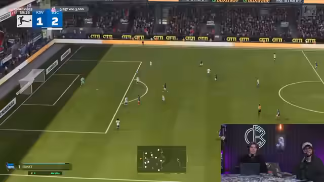 01:26:30Der Streamer wechselt zum Spielen im Karrieremodus und stellt die Halbzeitlänge auf sieben Minuten ein. Es treten technische Probleme bei der Kamerasteuerung auf, was die Spielersicht beeinträchtigt. Die Steuerung der Spieler wird als schwierig beschrieben, besonders bei Passspiel und Flanken. Das Spiel gegen Kiel wird simuliert, wobei erste Tore und Angriffsszenen gezeigt werden. Der Streamer äußert Frustration über die Spielmechanik und die Kameraführung, die das Gameplay beeinträchtigen.