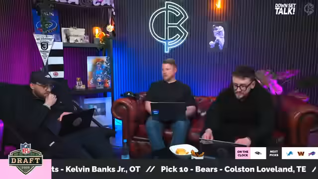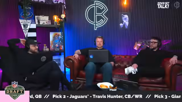 00:43:14Der zweite Pick der Jacksonville Jaguars ist das beherrschende Thema. Die Jaguars handeln mit den Browns, um Travis Hunter auszuwählen, geben dabei aber enorme Draft-Ressourcen ab, was dessen hohen Wert unterstreicht. Hunter wird als 'Two-Way-Superstar' beschrieben, der sowohl als Wide Receiver als auch als Cornerback beeindruckende gezeigt hat. Allerdings gibt es Bedenken bezüglich seines Gewichts und seiner Fähigkeit, in der NFL zwei Positionen effektiv zu spielen. Die Moderatoren sind sich einig, dass dies ein historischer Pick ist, der das Team der Jaguars für die Zukunft prägen könnte, insbesondere in Verbindung mit bereits vorhandenem Talent wie Trevor Lawrence und Brian Thomas.