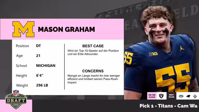 Beim diesjährigen NFL Draft wurden mehrere Überraschungen verzeichnet. Die Jackson entschieden sich mit dem zweiten Pick für Travis Hunter, einen vielseitigen Spieler. Gleichzeitig profitierten massiv von Trades und sammelten mehrere Draft-Picks. Die Draft-Klasse wird als 'Meat-Potato-Draft' beschrieben, mit weniger klaren Blue-Chip-Talenten als im Vorjahr. Analysten beobachteten besonders viele Handelsaktivitäten in der Range 13-18. Mittlerweile haben mehrere Teams ihre ersten Picks getätigt, darunter die Patriots mit Will Campbell und Raiders mit Ashton Jeanty. Die Entscheidungen bleiben von vielen Unbekannten geprägt.