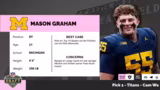 01:08:34Die Browns wählen Mason Graham, was Sinn ergibt, um an der gegenüberliegenden Position von Miles Garrett zu verstärken. Graham wird als Pass-Rusher beschrieben, dessen Tape 'unglaublich viel Spaß' macht. Auch bei ihm gibt es das Thema kurze Arme, was bei längeren Guards zu Problemen führt. Er gilt als ultrakomplett mit wenigen Defiziten. Die Depth Chart der Browns auf dieser Position bietet wenig Qualität, was den Pick sinnvoll erscheinen lässt.