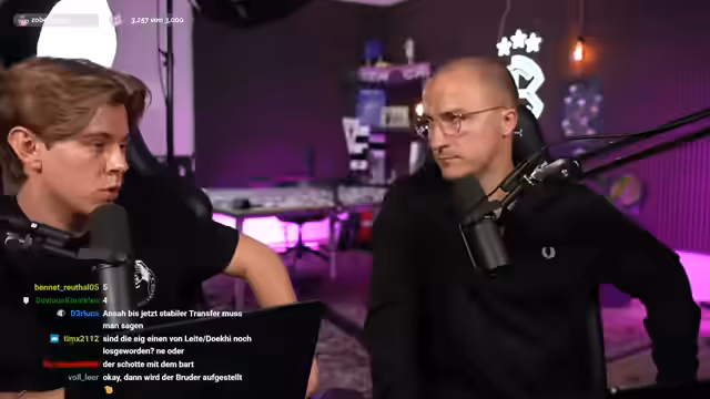 00:00:37Der Stream beginnt mit einer humorvollen Anmoderation, in der Niklas Lewinson als Rückkehrer aus Wolfsburg begrüßt wird. Es folgt ein kurzer Austausch über Wolfsburg-Transferverhandlungen und die auffällige Häufung dänischer Spieler beim VfL. Das Programm des Streams wird umrissen: Fortsetzung des Transfer-Talks der letzten Woche. Es wird auf Kommentare im Chat eingegangen, bevor die Moderatoren zum eigentlichen Thema überleiten, dem Transferfenster-Ranking der Bundesligisten. Dabei werden die Transfers der Vereine analysiert und bewertet. Ein Zuhörer erwähnte im Chat, dass er den Podcast gehört habe und nun direkt den Stream einschaltet. Die Streamer thematisieren noch kurz die EAFC-Release und die toxische Beziehung vieler Spieler zu FIFA, bevor sie mit dem Transferfenster-Ranking der Bundesligisten beginnen.