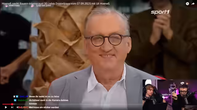 02:08:28Es wird eine Fragerunde zum Doppelpass angekündigt, bei dem der Streamer als Gast teilnahm, um Fragen zu Uli Hoeneß und den Abläufen hinter den Kulissen zu beantworten. Die Sendung war besonders, da sie das 30-jährige Jubiläum des Doppelpasses feierte und Uli Hoeneß als Stargast anwesend war. Neben dem aktuellen Moderator Florian König führten auch die drei Langzeit-Moderatoren Jörg Wontorra, Rudi Brückner und Thomas Helmer durch die Sendung. Der Streamer schildert seine Eindrücke und Erfahrungen, wobei er auf frühere Diskussionen mit Stefan Effenberg eingeht und dessen Haltung gegenüber Personen ohne Profifußball-Erfahrung thematisiert. Trotz unterschiedlicher Meinungen sei Effenberg hinter den Kulissen nett gewesen. Es wird die Frage aufgeworfen, ob Uli Hoeneß Influencer werden sollte. Der Streamer vergleicht seinen ersten Doppelpass-Auftritt, bei dem er mehr Redeanteile hatte und sich wohler fühlte, mit dem aktuellen Jubiläum. Er erklärt, warum er trotz möglicher Kritik an der Sendung zusagt, da sie eine große Reichweite und Relevanz hat und er die Möglichkeit sieht, inhaltlich zu überzeugen.